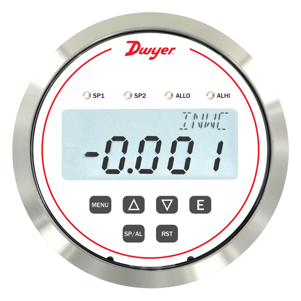 The Series RPME Room Pressure Monitor is designed for low differential pressure applications that require stringent pressure monitoring and alarming. The Series RPME room pressure monitor can be configured to monitor positive or negative pressure in protected environments and clean manufacturing areas. The RPME room pressure monitor is a complete system with a fixed segment LCD which enables access to pressure, security, calibration, and alarm setup. The RPME has a brushed stainless steel bezel that allows for easy cleaning.