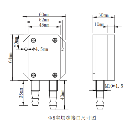 過程連接   Φ8寶塔嘴或Φ6快接頭,可定制其它類型過程接口